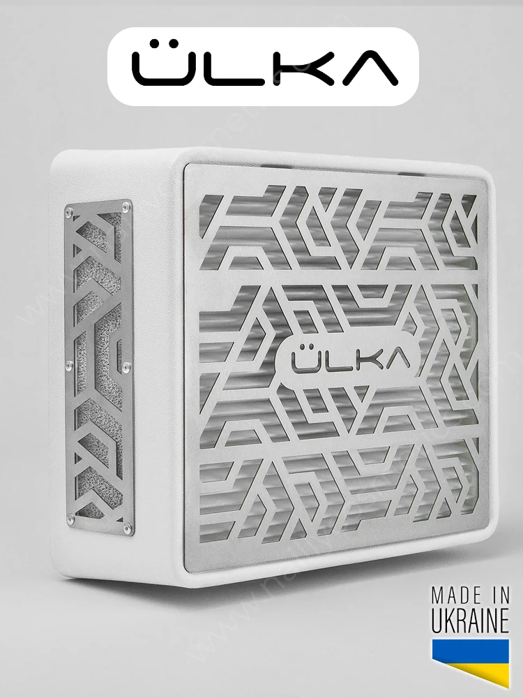 The model is universal – fit both for manicure and pedicure. A perfect option for nail professionals working with a large amount of dust. The material of the upper and side grills is metal. It is possible to make an individual inscription on the upper grill. Thanks to the energy-efficient fan, it consumes less electricity and produces more power than declared. It has a body made of impact-resistant plastic; two modes of operation that can be switched using a button/regulator on the body; increased area of dust absorption.